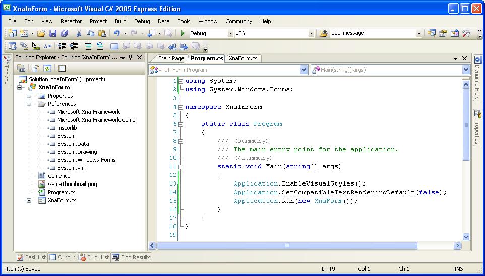 Basically, what we want is a Visual Studio project that uses both the .NET Windows Forms and the XNA